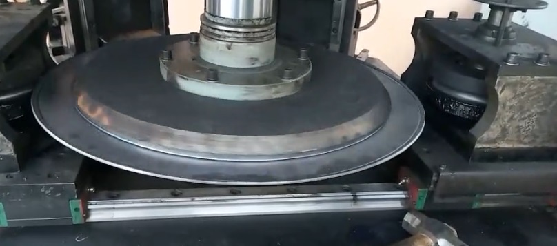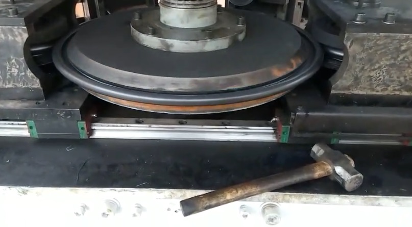 d.彎邊成型:該系統在彎邊輪的下面,增加了一個支撐輪,支撐輪對工件進行有效支撐,防止圓邊變形。